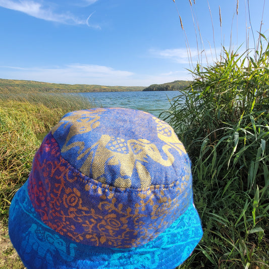 REVERSIBLE Pashmina Bucket Hat -Rainbow Elephant